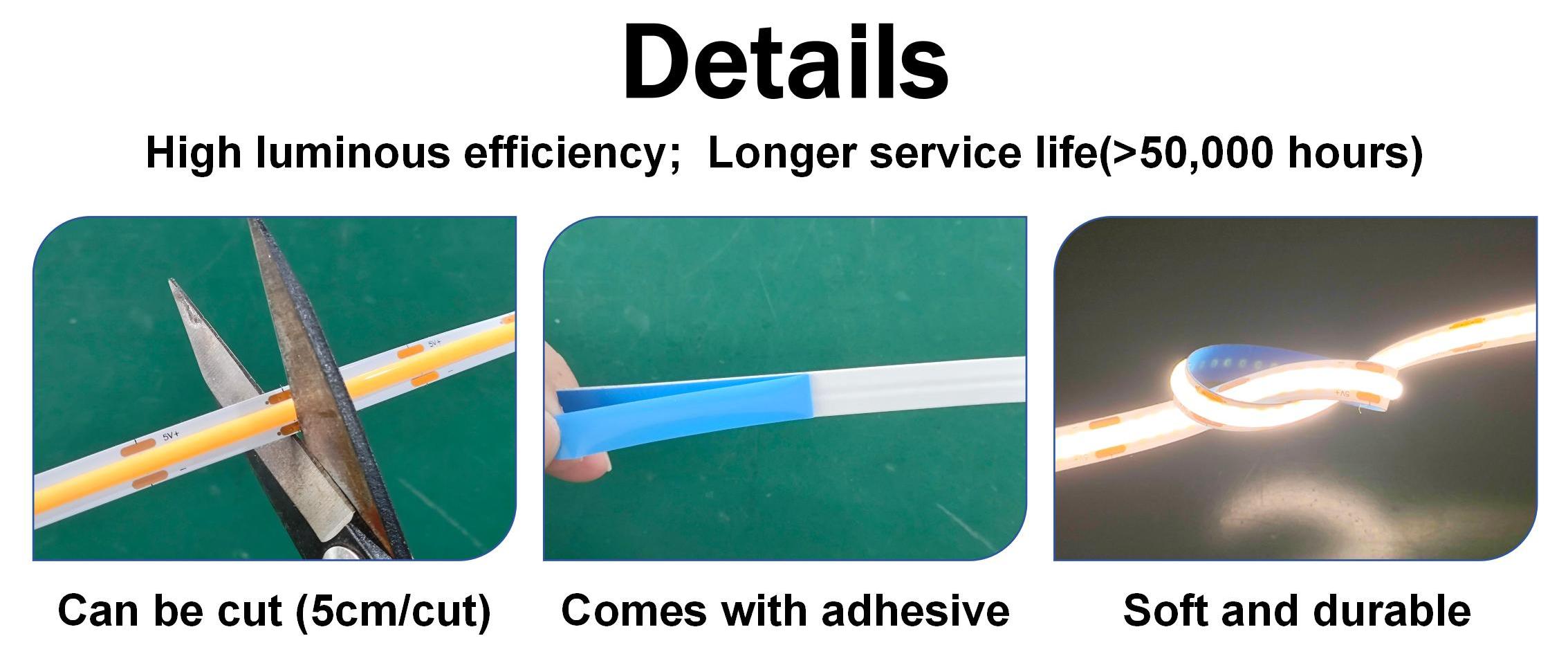 2. Vocêpode cortar livrementea duração da faixa de luz de acordo com suas necessidades e use sua alta qualidadeadesivo para ficarem várias superfícies secas e limpas, comoParedes de TV, fundos de cabeceira, guarda -livros de estante de guarda -livros em decoração doméstica ou janelas de exibição comercial e contadores. espere.